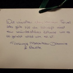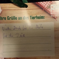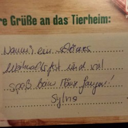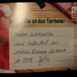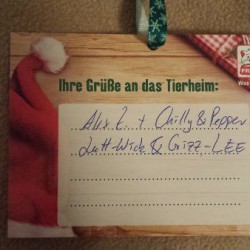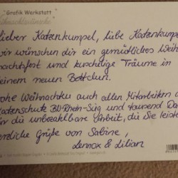 Viele hinterließen der jeweils beschenkten Katze und uns auf der Rückseite der Karten Wünsche und Nachrichten.