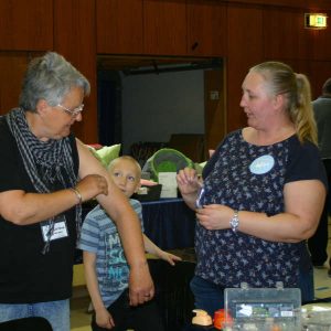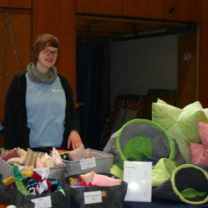 Neben allerlei Köstlichkeiten in der Cafeteria erwartete sie ein reichhaltiges Angebot an Trödel, Büchern, Marmeladen, Schmuck & Besonderes und vieles mehr. Diesmal neu dabei: Selbstgemachte Katzenbettchen, -spielzeug, Schnüffelmatten und Stinkekissen. Das Angebot fand begeisterte Abnehmer. Die Fellnasen daheim haben sich sicher sehr über die mitgebrachten Dinge gefreut.