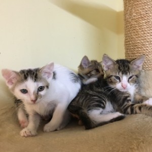 Ungefähr zeitgleich wurde eine hochtragende Mutterkatze an den Katzenschutz abgetreten und befand sich auch in der Praxis. So reifte unser Plan, „Alec“ noch solange mit der Flasche aufzuziehen, bis die Katze ihre Jungen bekam. Dann wollten wir schauen, ob „Alec“ von der Mutter adoptiert werden würde.