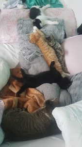 mit ihrer Pfote, ohne Krallen, und zweimal mit Fauchen gezeigt, wann Schluß ist. Seitdem ist es dann nicht mehr vorgekommen. Sie läuft mir hinterher, liegt neben mir auf dem Stuhl oder Sofa und läßt sich gerne verwöhnen ❤ Am Liebsten spielt sie mit der Gardinenschnur, wenn sich diese