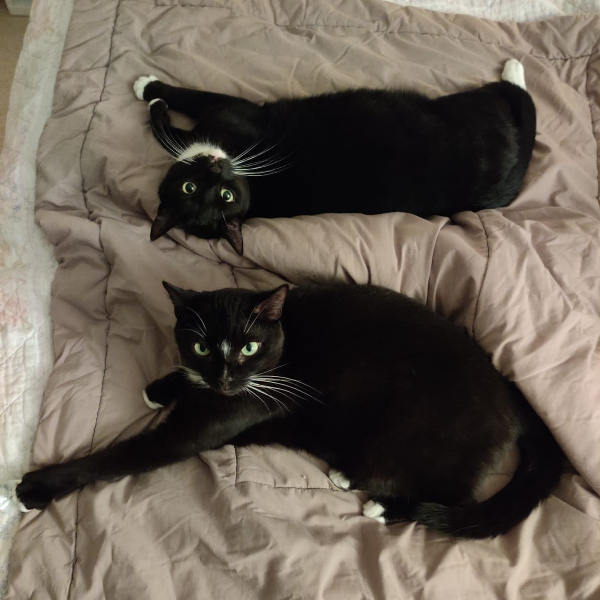 Asmo und Theo sind sehr verschmuste und menschenbezogene Katzen. Sie sind klassische Brüder – mal raufen und toben sie zusammen, streiten sie sich kurz und kuscheln dann wieder zusammen. Sie spielen gerne mit Katzenangeln und kleinen Spielzeugmäusen. Theo findet Clickern ganz toll und kann schon „Sitz“ und „Pfötchen“. Die Beiden sind bisher Wohnungskatzen und lieben ihre Kratzbäume, die sie gerne zum Krallenwetzen und auch zum Liegen nutzen. Asmo schnuppert aber auch gerne mal an der frischen Luft und wir können uns gut vorstellen, dass sie sich auch über einen Garten freuen würden. Sie kennen Kinder und kommen sehr gut mit Ihnen klar.