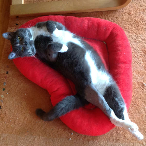 Unvorsichtig und ungestüm, wie unkastrierte Kater auf der Suche nach der großen Liebe (oder etwas Ähnlichem…) es nun mal sind, lief Kater Balu auf die Straße. Leider wurde er hierbei von einem Auto erfasst und liegen gelassen… Mit großem Glück im Unglück überlebte Balu. Sein Schienbein wurde zertrümmert. Glücklicherweise gibt es Menschen, die die Tiere nicht ihrem Schicksal überlassen und Balu kam mit starkem Untergewicht und großen Hunger zu uns. Wir brachten ihn zum Tierarzt, wo sein gebrochenes Schienbein operiert wurde. Dort wurde ihm ein Nagel eingesetzt, der aber nach Ostern wieder rauskommt. Das Bein schont Balu ganz brav bei seiner Pflegefamilie. Außerdem ist er mittlerweile kastriert worden.