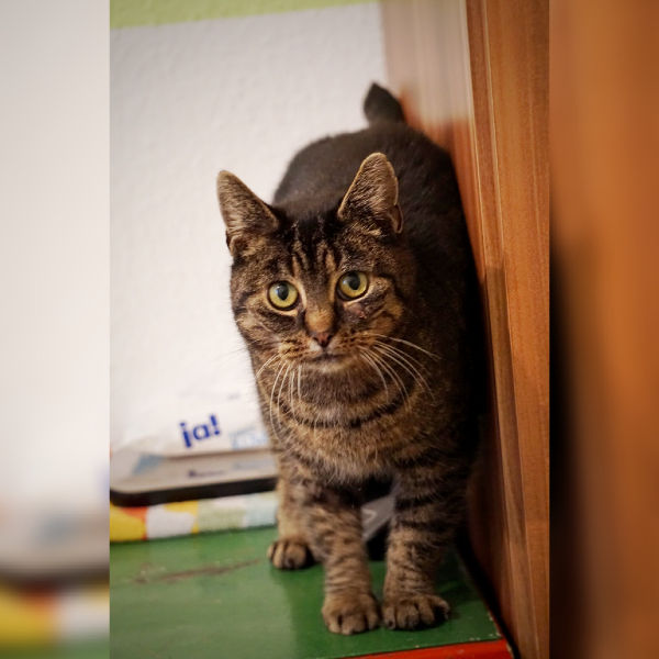 Bianca – genannt Bibi – kommt von einer Außenfutterstelle und ist eine kleine Tänzerin – so viel trampelt sie freudig auf und ab, wenn man sich mit ihr beschäftigt. Sie schmust ohne Ende und ist nicht menschenscheu. Sie ist verträglich mit anderen Katzen, aber reagiert schnell eifersüchtig. Den Hund auf der Pflegestelle lernt sie noch kennen. Bibi sucht ein Zuhause mit gesichertem Balkon, Terrasse oder Garten.