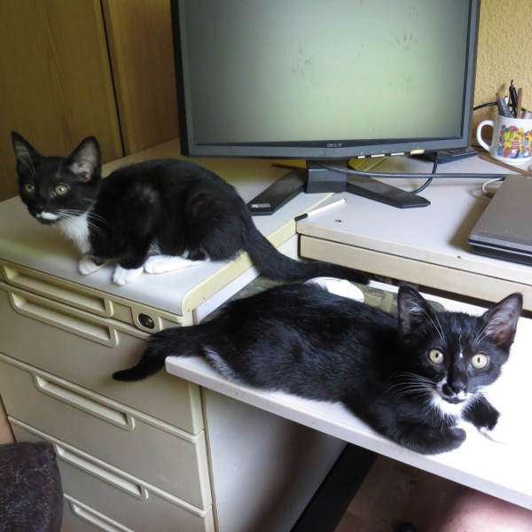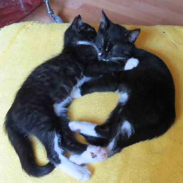 Die beiden ca. 12 Wochen jungen Kätzchen sind sehr schmusig und lieb. Altersgemäß neugierig und unternehmungslustig. Sie erkunden die Umgebung ohne Rücksicht auf Verluste. Bei Emelie und Sophia geht die Post ab. Sie brauchen sich gegenseitig, um sich zu waschen und miteinander zu „kämpfen“. Die Kätzchen werden nur zusammen vermittelt.  Sie sind auch für Kinder ab Schulalter geeignet. Gesucht wird entweder eine Wohnung mit ausbruchsicherem Balkon oder Freigang in einer verkehrsberuhigten Gegend.