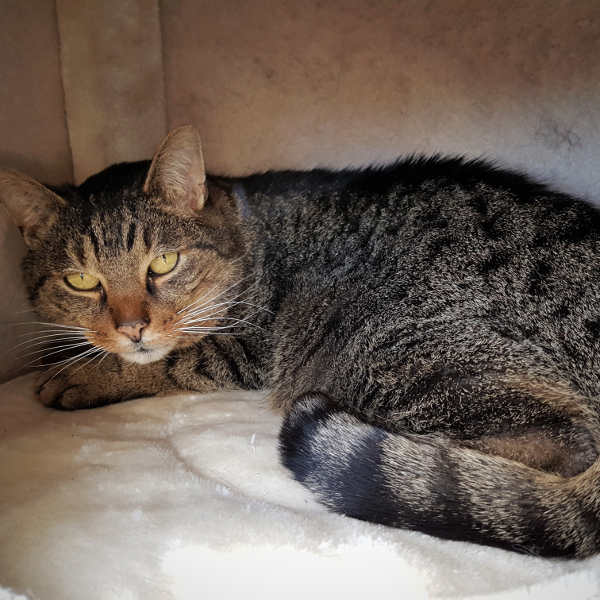 Meine Menschen hätte ich lieber ohne Artgenossen ganz für mich allein. Die meiste Zeit schlafe ich gemütlich im Kratzbaum und freue mich sobald es Futter und Streicheleinheiten gibt. Manchmal erschrecke ich mich noch vor ruckartigen Bewegungen und insbesondere Besen o.Ä. machen mir Angst. Trotz meiner Vorgeschichte, habe ich aber das Vertrauen in die Menschen nicht verloren. Ich würde mich riesig freuen, wenn ich eine Familie finden würde, die mich füttert und mit mir schmust und mich ganz doll lieb hat.