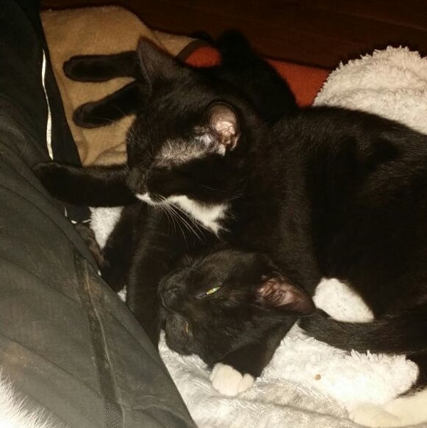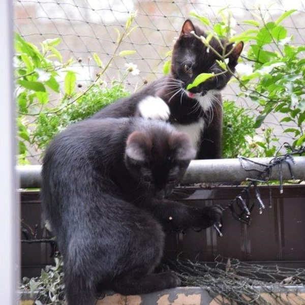 Hallo, unsere Namen sind Muck (schwarz-weiß) und Liya (schwarz). Wir sind ca. 6 Monate alt. Zusammen mit unserer Schwester Chili wurden wir draußen im Freien aufgegriffen. Wir haben an Bahnschienen gelebt und dadurch leider ein Geschwisterchen verloren. Drinnen brauchten wir etwas Zeit, um zum Menschen Vertrauen zu fassen. Jetzt sind wir aber total verschmust und genießen die Sicherheit und Zuwendung. Wir sind kleine aufgeweckte, anhängliche Gesellen, die gerne auch in den Freigang wollen. Mittlerweile sind wir auch kastriert, so dass dem nichts im Wege stehen sollte. Wenn du uns kennen lernen möchtest, melde dich doch bitte. Wir würden gerne bald in unser richtiges Zuhause umziehen.
