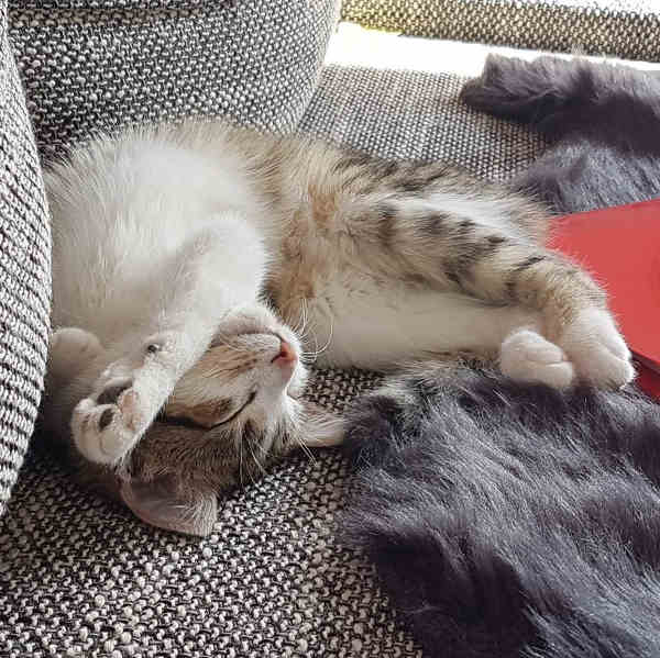 Ihre kräftigere Schwester Kiara, die Tage später auch eingesammelt werden konnte, möchte vor lauter Angst im Moment nichts mit Menschen zu tun haben. Vielleicht findet sich jemand, der sie als Schattenkatze mit aufnehmen möchte. Kiara braucht auf jeden Fall den Freigang.
