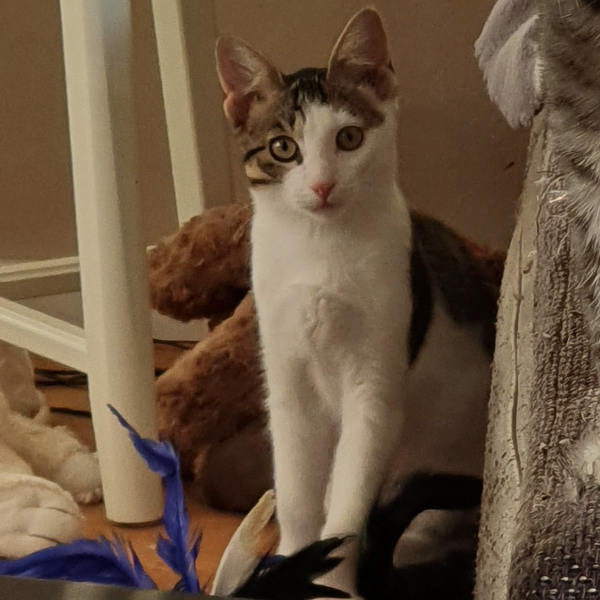 Nodin (der Wind) und Namida (Sternentänzerin) sind ein sehr liebes verspieltes Pärchen, die gerne zusammen in ein ruhiges Zuhause ziehen würden. Auf der Pflegestelle haben sie lange hinter dem Sofa gelebt und sich kaum raus gewagt. Mittlerweile nehmen sie jedoch schon Leckerchen aus der Hand, so dass das Kuscheln nicht mehr lange auf sich warten lassen wird. Da sie jedoch sehr scheu waren, kann es sein, dass sie nie die „Arm-Kuschel-Katzen“ werden, sondern dem Menschen immer mit Vorsicht begegnen werden. Trotzdem zeigen sie viel Potential, sind sehr neugierig, was der Mensch so macht und erschrecken sich oft vor ihrer eigenen Courage, wenn sie doch sehr nahe kommen. Das können sie aber durchaus ablegen. In einem ruhigen Zuhause, vielleicht auch mit sozialem und souveränen Gefährten, können sie jedoch auch sehr schnell auftauen. Wichtig ist, dass man ihnen Zeit gibt anzukommen und sie nicht bedrängt. Sobald sie zahm sind und dem Bezugsmenschen vertrauen, wäre ein möglichst sicherer Freigang gut für die Beiden. Mit Hunden kommen sie zwar mittlerweile ganz gut klar, allerdings sollte das neue Zuhause wenn, einen ruhigen Hund haben.