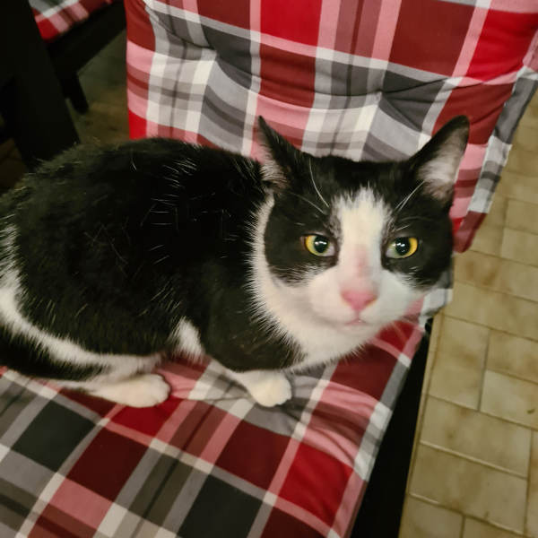 Zunächst kam Kater Prinz nur heimlich zu uns auf die Terasse auf der Suche nach Futter. Da wir bereits eine andere Katze hier rumstreunern haben, steht immer Trockenfutter auf der Terasse, so dass er schnell zum regelmäßigen Besucher wurde. Irgendwann bemerkten wir dann, dass er verletzt war und Hilfe benötigte, und so haben wir uns an den Katzenschutz Bonn/Rhein-Sieg e.V. gewandt, die uns tatkräftig unterstützt haben, damit dem Kater geholfen werden konnte. Zu diesem Zeitpunkt war Prinz jedoch so ängstlich, das er nach erfolgreicher Behandlung und Kastration beim Tierarzt erstmal wieder hier in seiner gewohnten Umgebung kam. Es dauerte nur wenige Tage bis er sich wieder blicken ließ auf der Suche nach Futter. Jetzt einige Wochen später hat er sich total verändert. Er kommt fast täglich zu uns zum Fressen und lässt sich streicheln und springt auch schon mal auf den Schoß, wenn man den Napf nicht schnell genug voll macht. Er ist sehr neugierig und würde vermutlich sehr gerne zu uns ins Haus, was leider aufgrund unserer eigenen Katzen nicht möglich ist. Daher würden wir uns wünschen, dass er ein festes eigenes Zuhause bekommt. Es sollte jemand sein, der die Geduld hat, sich auf ihn einzulassen und Ihm Zeit gibt, sich selbst zu nähern. Auch sollte er stets die Möglichkeit zum Freigang haben. Wir denken, kleine Kinder passen nicht zu ihm, und wie es mit Hunden aussieht, können wir auch nicht sagen. Was andere Katzen angeht, macht er auf uns keinen agressiven Eindruck, aber das müsste man ggf. ausprobieren. Wir würden ihm wünschen, das er bald ein für Immer-Zuhause findet, wo er dann sein volles Potenzial als Schmusebacke entfalten kann, denn wir glauben, dass er so ein Kandidat ist.