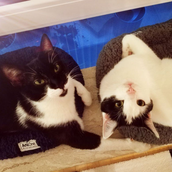 Das sind Sally (weiss/schwarz) und Filou (schwarz/weiss). Sie verlieren ihr Zuhause wegen einer Allergie. Sie sind lieb, verschmust, menschenbezogen, hängen sehr aneinander und werden nur zusammen vermittelt.Sie sind beide ca. 1 Jahr alt, geimpft, gechipt, kastriert. Altersbedingt sind sie auch sehr verspielt.