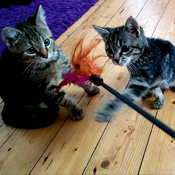 Sieglinde und Fabienne haben wir bei einer Kastrationsaktion auf einem großen Werksgelände mitgenommen. Die Pflegestelle hat ganze Arbeit geleistet und aus zwei kleinen Scheuchen wunderbare Katzenkinder gemacht. Lilly und Fabi, so werden sie liebevoll gerufen, sind auf der Suche nach zuverlässigen Dosenöffnern. Sie sind altersgemäß sehr verspielt und hätten später gerne Auslauf in einer verkehrsarmen Gegend.