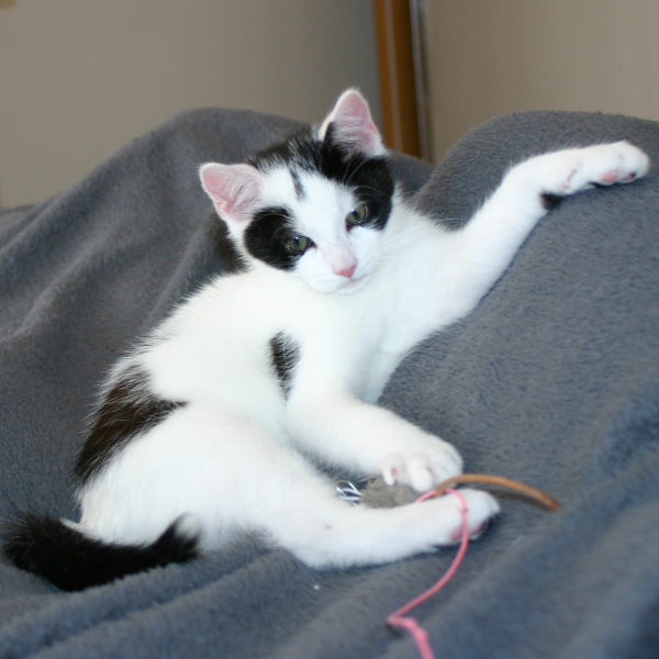 Steppke ist ein selbstbewußtes, aufgewecktes Katerchen. Er tobt durch die Wohnung und spielt mit allem und jeden. Er wurde als Einzelkind geboren, kennt aber keine Scheu vor Artgenossen. Steppke sucht ein Zuhause als Zweitkatze zu einer etwa gleichaltrigen Katze, die auch gerne rauft und spielt. Fürs Schmusen hat er erst Zeit, wenn er müde wird. Dann liegt er gerne mit im Bett und schnurrt und kuschelt sich an seine Menschen. Wir wünschen uns für Steppke eine großzügige Wohnung mit viel Platz zum Toben. Wenn er älter ist, vielleicht mit Möglichkeit zum Auslauf. Steppke freut sich schon auf Besuch.