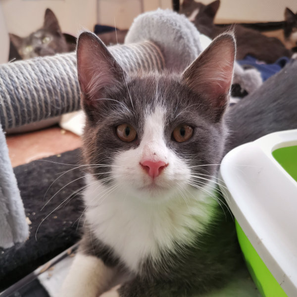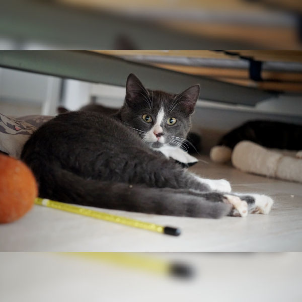 Tom ist ein wahnsinnig verspielter kleiner Kerl! Beim Spielen mit der Spielangel vergisst er oft seine Angst und man darf ganz nah an ihn dran. Seine schmusige Seite muss er aber noch entdecken. Vielleicht hilfst du ihm dabei?