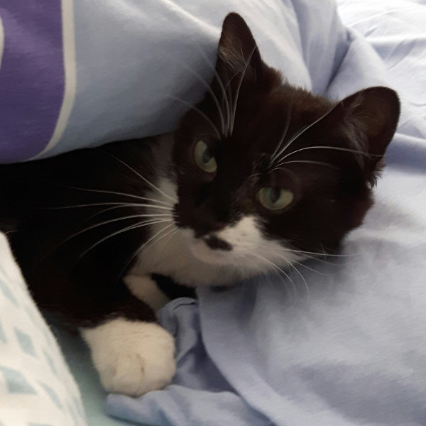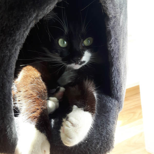 Hallo ihr lieben Menschen, mein Name ist Umbra und bedeutet Schatten. Das heisst aber nicht, dass man mich selten sieht. Nein, das liegt daran, dass ich einen schwarzen Farbstrich auf dem Rücken habe. Ich liebe es zu kuscheln. Dabei tretel ich gerne auf meinen Menschen rum oder liege daneben und schnurre wie ein Weltmeister. Ich spiele auch leidenschaftlich mit Spielmäusen und Angeln. Und ich liebe es mich unter Decken zu verstecken oder in der Höhle vom Kratzbaum zu liegen. Hauptsache höhlenartig. Mit Kindern komme ich auch gut zurecht.