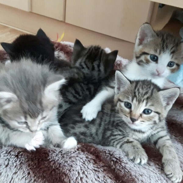 Der V-Wurf und der dazugesetzte Alec ist bei uns auf einer Pflegestelle. Die Katzenkinder sind ihrem Alter entsprechend verspielt und sehr zutraulich. Die Kätzchen suchen paarweise oder zu einem gleichaltrigen Artgenossen ein Zuhause. Die Katzenmutter Kitti möchte nach den Entbehrungen auch nochmal neu durchstarten und sucht nach dem Auszug ihrer Kinder ein Zuhause, wo sie dann auch endlich mal verwöhnt wird und ihr Leben genießen darf.