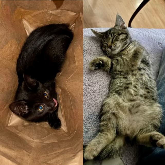 Venom (schwarzer Kater) und Serafine (getigerte Katze) sind zwei