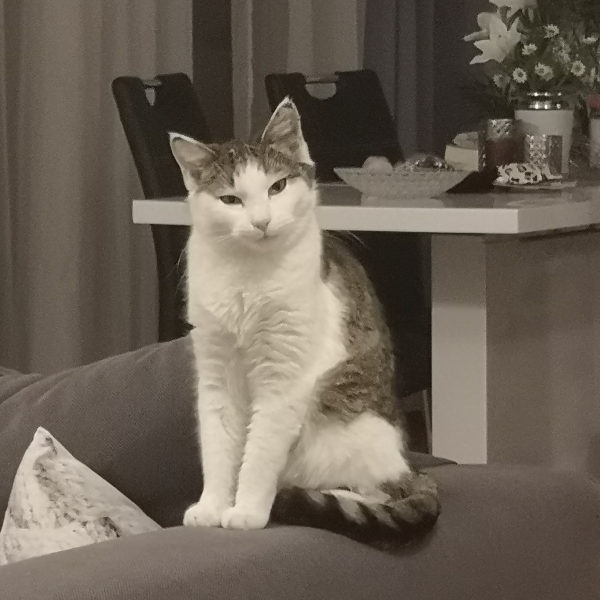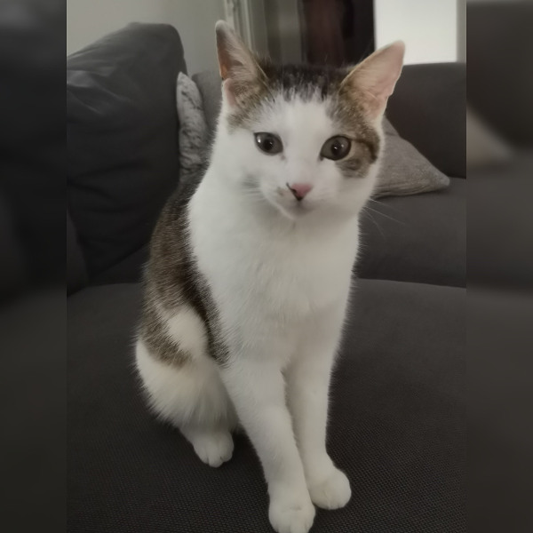 Ich bin Yumi (3, grau-getigert), ein kleines Schiefköpfchen, es wird vermutet, dass ich einen Autounfall auf der Straße hatte – seitdem trage ich den Kopf etwas schief und habe ab und zu Probleme mit dem Gleichgewicht. Das macht mir aber gar nichts aus! Ich spiele für mein Leben gern, liebe es zu klettern, aber mein Lieblingsplatz ist bei meiner Pflegemama auf dem Arm – das ist toll! Da wird man geknuddelt und bekommt soooo viel Liebe!